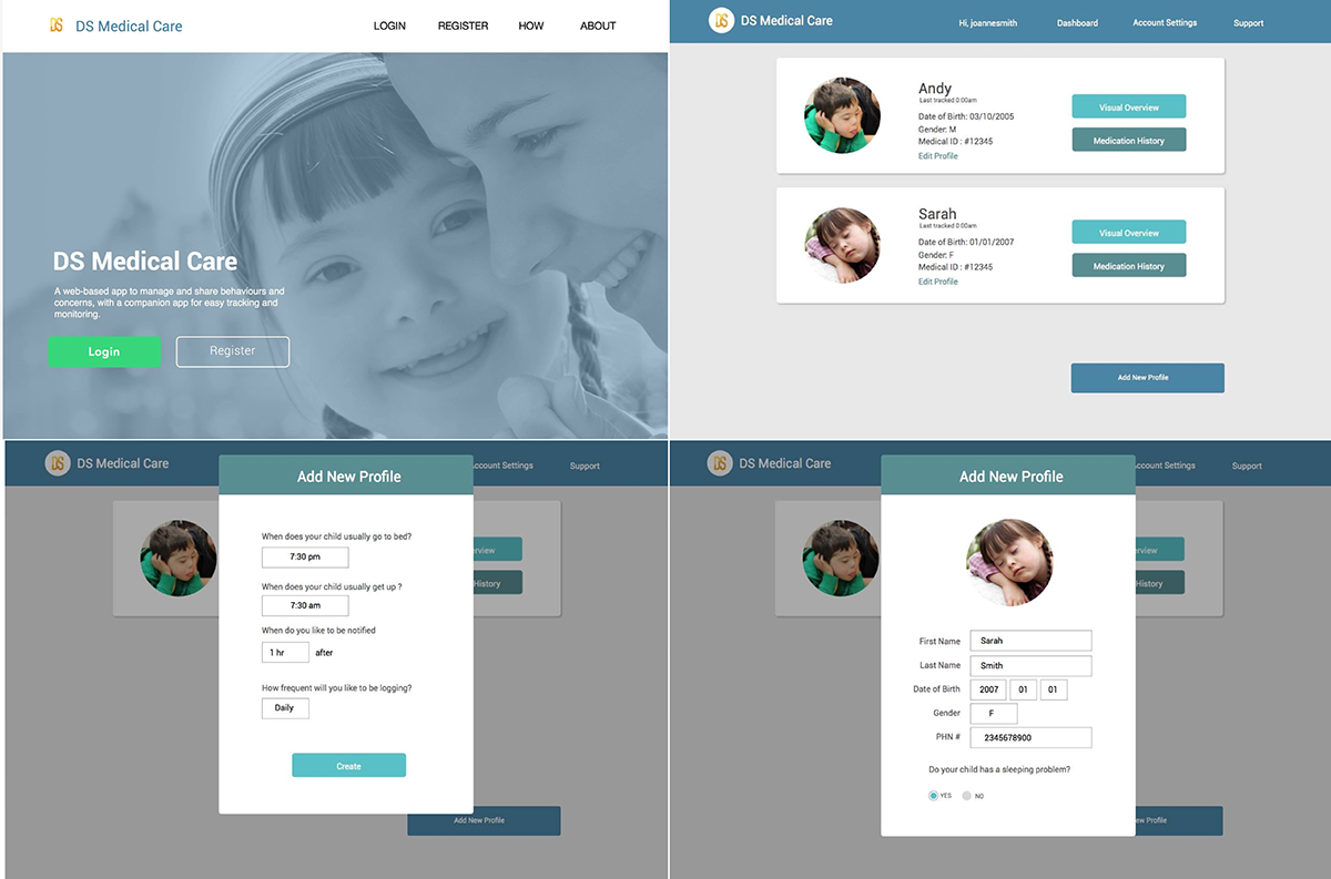 「唐氏症醫療照護」是 UBC 大學教授 Dr. Osman Ipsiroglu 對於兒童睡眠障礙(一個常見於唐氏症兒童的症狀)研究的一部份。 在進行研究時,醫生都會發放紙本表格讓家長回去填寫關於孩子一天的狀況,每天都要做紀錄。但事實上這麼做的效率很差。