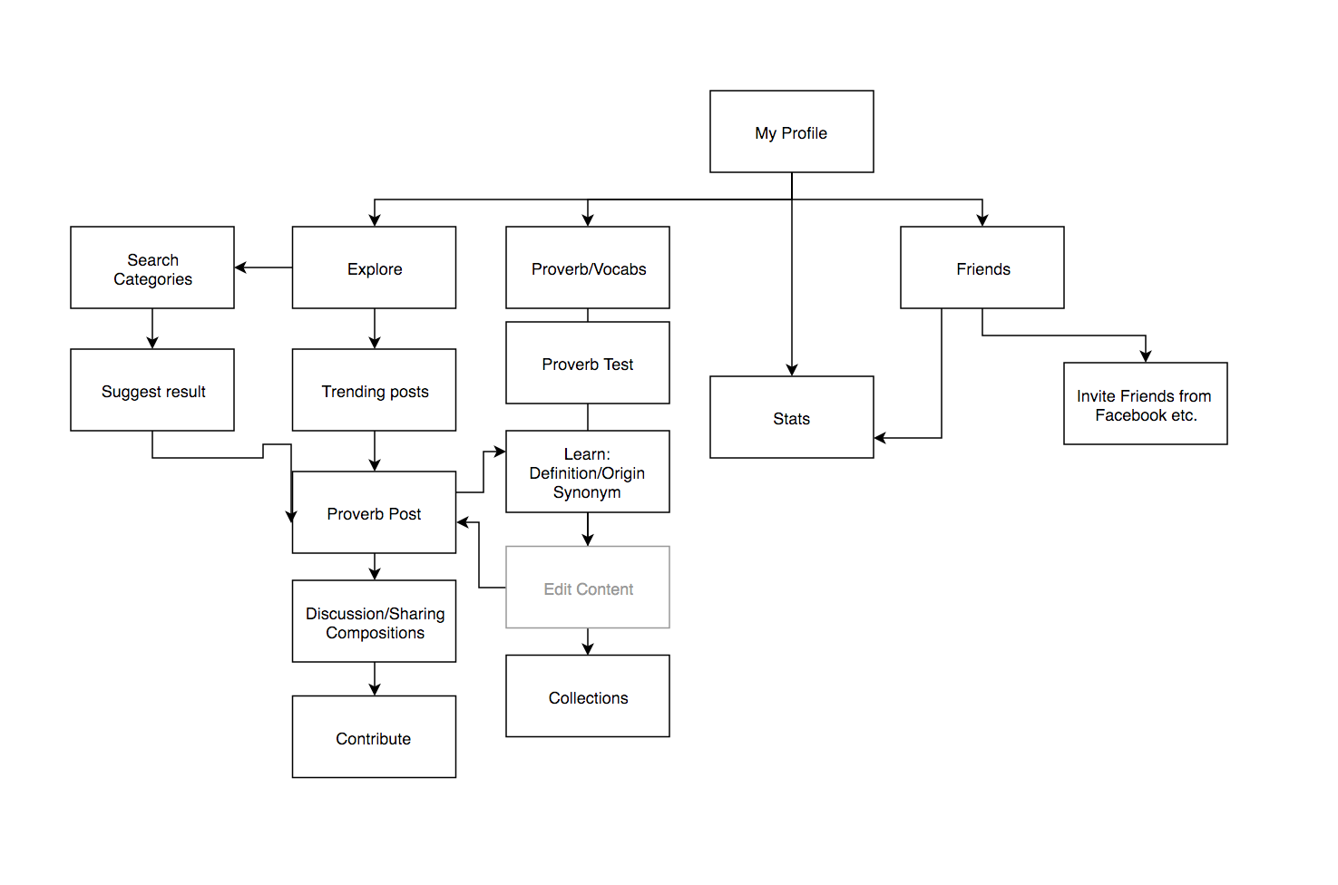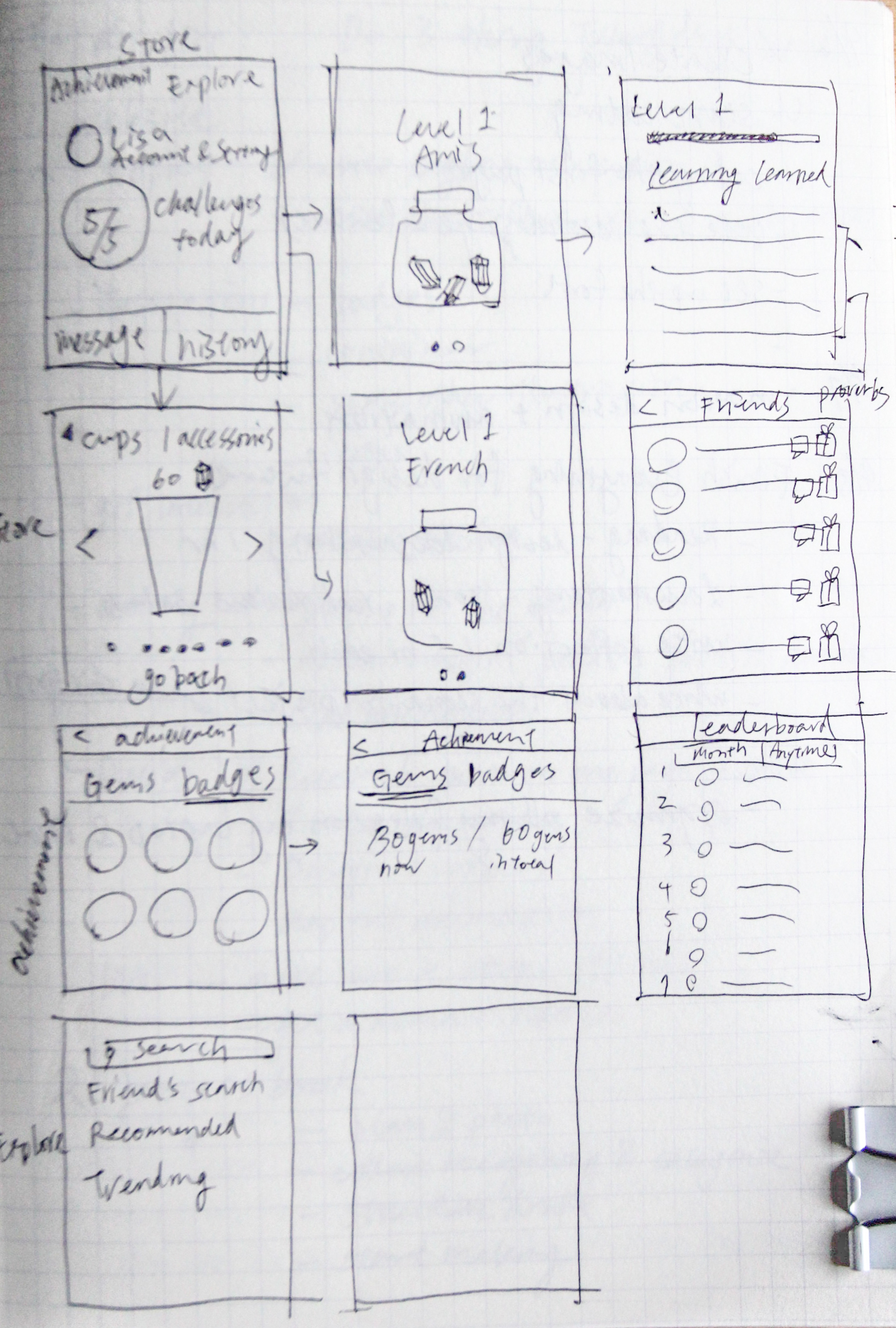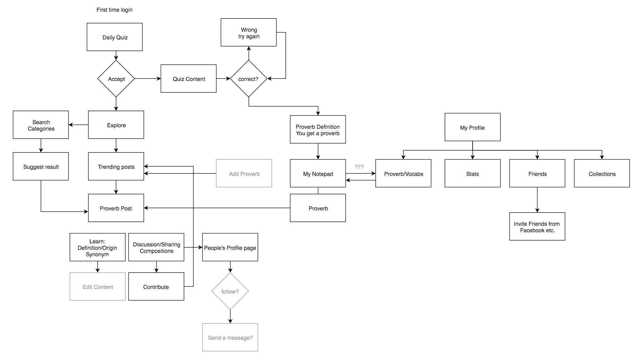 左上方為 APP 的進入點,可以在此圖中看到從開始每日學習之後的流程