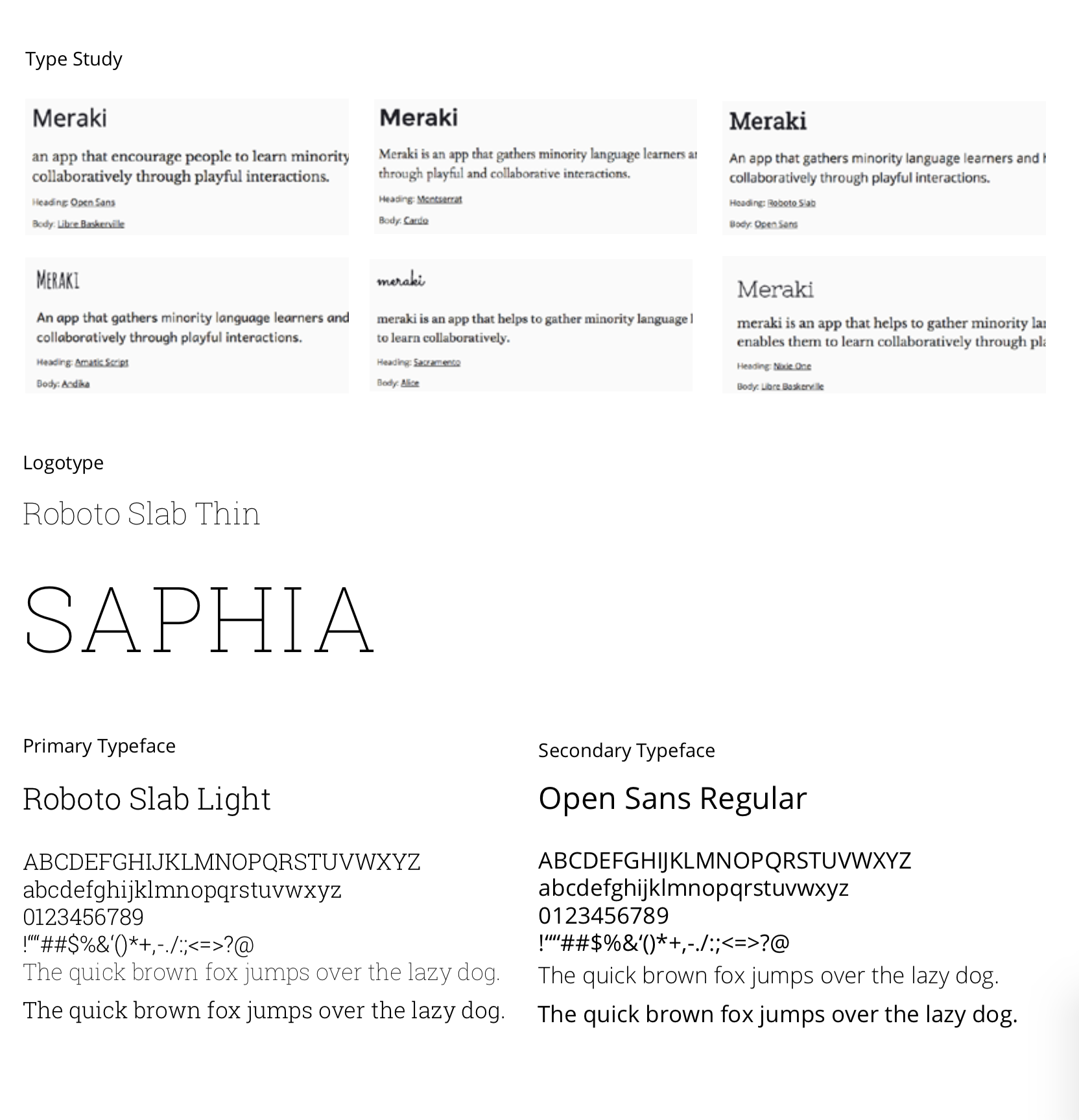 探索不同字型的組合,最後採用 Roboto Slab